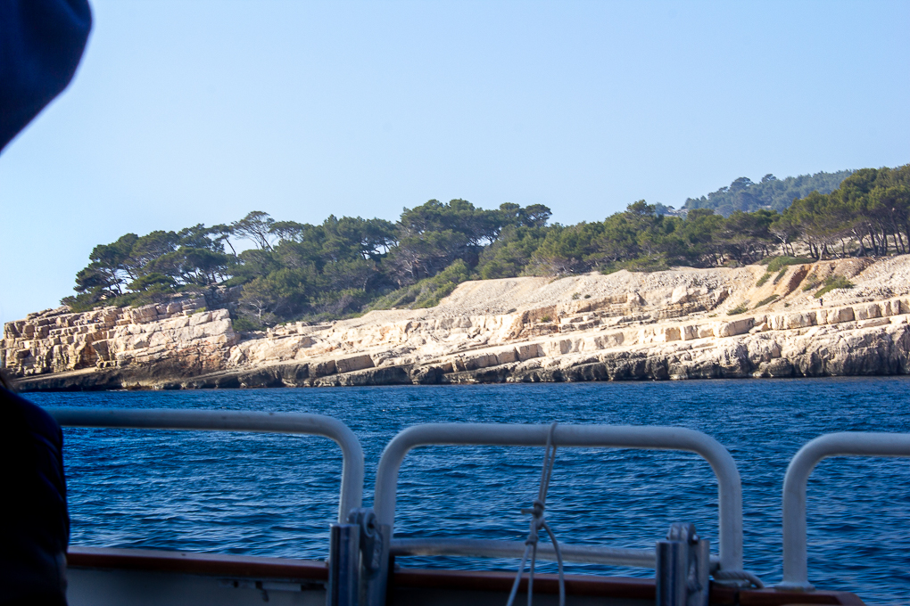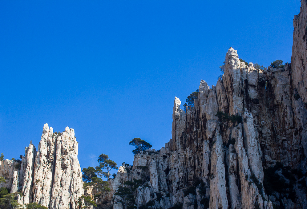 Now, look a bit higher as the serenade continues while the boat cuts through the tidy waves of the Mediterranean Sea. You cannot help but admire the robustness of pine trees growing on white massif rocks made of limestone, formed more than 100 million years ago on the sea floor.