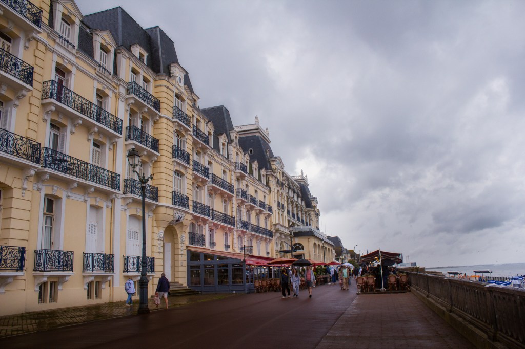 What captured my attention was the Grand Hôtel in Cabourg, facing the promenade with a view of the ocean. Large, of course, but adorned with magnificent architectural ornaments. My perspective was as wide as possible to match the grandeur of this historical landmark.